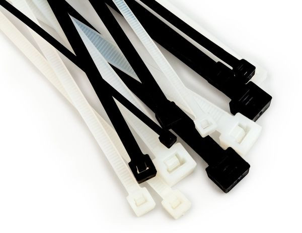 3M™ Scotchflex™ Kabelbinder sind aus UL-zugelassenem 6/6-Nylon geformt. Sie sind selbstverlöschend gemäß UL 94- V2 und weisen eine Zugfestigkeit von 80 bis 800 N auf.