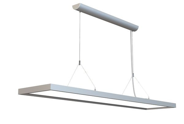Pendelleuchte, Weiche und eindrucksvolle Lichtverteilung für direkte und indirekte Beleuchtung, Bildschirmarbeitsplatztauglich, UGR<19, optional: 1-10V / Widerstand dimmbar, variable Abhängung, 5 Jahre Garantie, unten mikroprismatisch / oben opal, maximale Abhängung: 1,60 m.