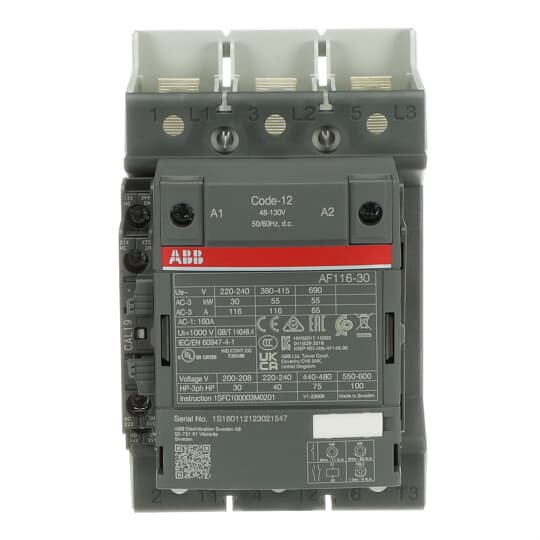 Schütze AF116 bis AF750 von 55 bis 400 kW AC-3 (400 V) stehen für die kompakte Baureihe mit AC/DC-Ansteuerung und sehr weiten Spulenspannungsbereichen. Nur 4 Spulen decken Steuerspannungen von 20...500 VDC bis 24...500 VAC ab - ohne zusätzlich erforderliche Löschglieder. Dadurch sind sie weltweit und nur in geringer Varianz einsetzbar. AF116 bis AF370 gibt es auch in direkt aus SPS ansteuerbaren Versionen, ab AF400 ist ein SPS-Eingang standardmäßig vorhanden. AF-Schütze schalten Leistungskreise mit Motoren, leicht induktiven oder nicht-induktiven Lasten. Anbaubare Zubehörteile sind bis zu 2 rechts- und linksseitig montierbare 2-polige Hilfsschalter. Alle Hilfsöffnerkontakte sind als Mirrorkontakte nach IEC60947-5-1 Anhang L ausgeführt. Weiteres Zubehör wie Klemmenabdeckungen, Verdrahtungshilfen sowie Verriegelungsglieder u.a. ergänzen das Sortiment.