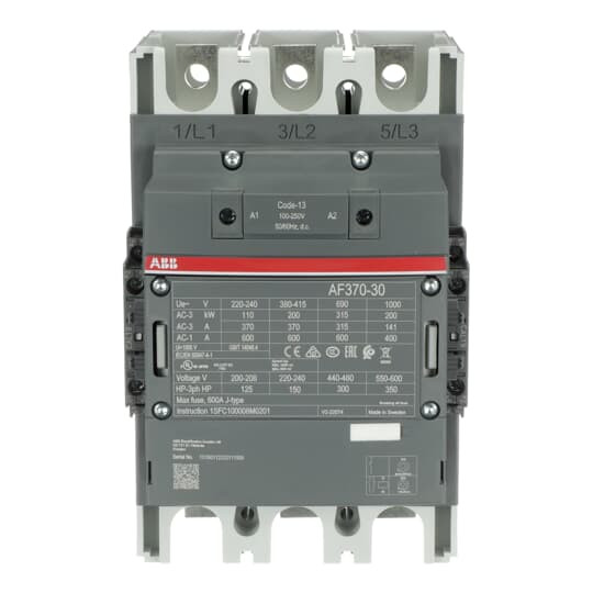 Schütze AF116 bis AF750 von 55 bis 400 kW AC-3 (400 V) stehen für die kompakte Baureihe mit AC/DC-Ansteuerung und sehr weiten Spulenspannungsbereichen. Nur 4 Spulen decken Steuerspannungen von 20...500 VDC bis 24...500 VAC ab - ohne zusätzlich erforderliche Löschglieder. Dadurch sind sie weltweit und nur in geringer Varianz einsetzbar. AF116 bis AF370 gibt es auch in direkt aus SPS ansteuerbaren Versionen, ab AF400 ist ein SPS-Eingang standardmäßig vorhanden. AF-Schütze schalten Leistungskreise mit Motoren, leicht induktiven oder nicht-induktiven Lasten. Anbaubare Zubehörteile sind bis zu 2 rechts- und linksseitig montierbare 2-polige Hilfsschalter. Alle Hilfsöffnerkontakte sind als Mirrorkontakte nach IEC60947-5-1 Anhang L ausgeführt. Weiteres Zubehör wie Klemmenabdeckungen, Verdrahtungshilfen sowie Verriegelungsglieder u.a. ergänzen das Sortiment.