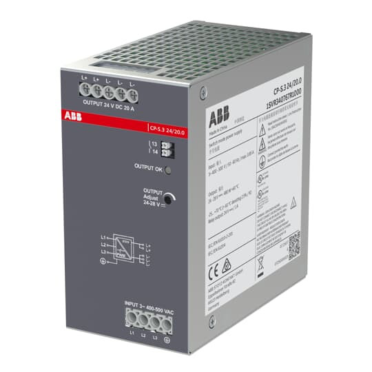 | Kurzbeschreibung | Netzteil, In:3x400-500VAC Out:DC 24V/20A |