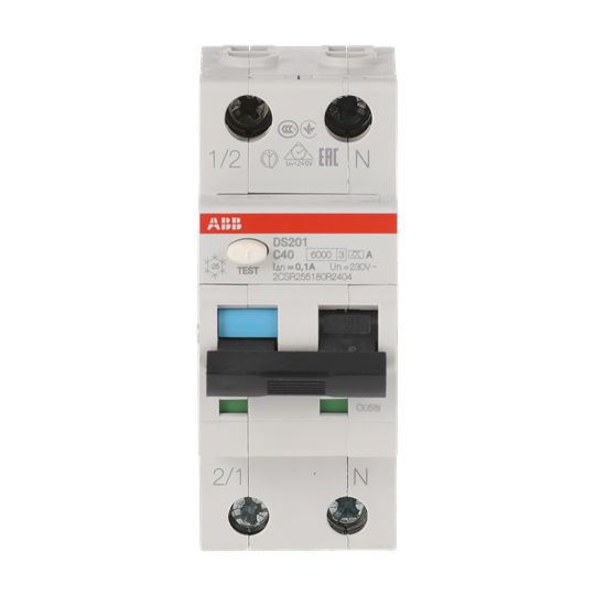 RCBO DS201 A Typ A ist 1-polig geschützt (LS), 2-polig schaltend.