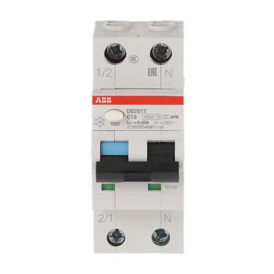 RCBO DS201 AT (Traction) Typ A ist 1-polig geschützt (LS), 2-polig schaltend.