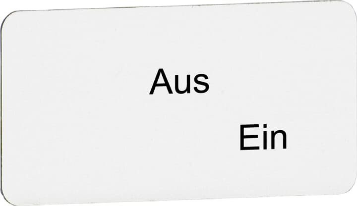 | Kurzbeschreibung | Beschriftungsschild 2 Positionen, "Aus" "Ein" Kunststoff schwarz, silber |