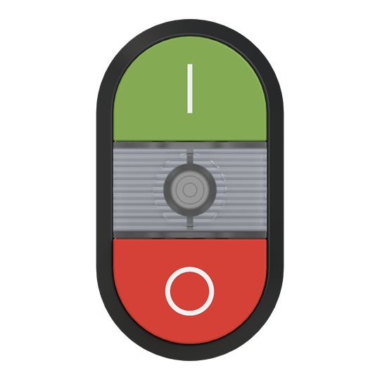 Kurzbeschreibung Doppeldrucktaster, Tasten - oben grün: Symbol I - unten