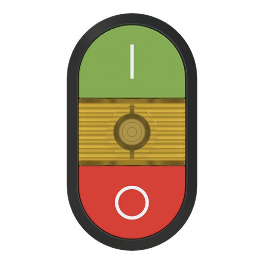 Kurzbeschreibung Doppeldrucktaster, Tasten - oben grün: Symbol I - unten
