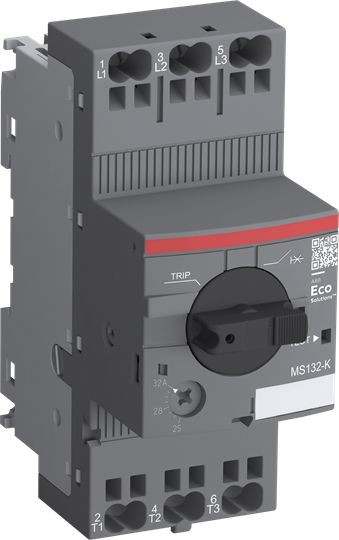 Motorschutzschalter MS132...K in schraubenloser Push-in Federanschlusstechnik mit thermischem und elektromagnetischem Schutz steht für die kompakte und leistungsstarke Baureihe mit hohem Kurzschlussausschaltvermögen für den Motorschutz bis 15 kW (400 V) mit einer Modulbreite von 45 mm. Das temperaturkompensierte Gerät hat eine Drehgriffbedienung mit einer klaren Schaltstellungsanzeige I/TRIP/0. Darüber hinaus verfügt MS132...K über eine Kurzschlussanzeige. Der Drehgriff ist mit Hilfe eines Vorhängeschlosses in 0-Position direkt verriegelbar. Hilfs- und Signalkontakte stehen ebenfalls in Push-in Federanschlusstechnik zur Verfügung und können ohne Werkzeug auch an die Motorschutzschalter in Schraubtechnik angebaut werden. Direktadapter zu Schützen der Reihe AF...K erlauben den einfachen Aufbau von kompakten Starterkombinationen. Schutzgehäuse sowie Zubehör für Schaltschrank- und Türeinbau ergänzen das Sortiment. Atex-Zertifizierung erlaubt den Schutz von Motoren im Ex-Bereich. Die Push-in Federanschlussklemmen erlauben für starre Drähte und Litzen mit Aderendhülsen werkzeugloses und zeitsparendes Einstecken der Anschlussleitungen, Litzen ohne Aderendhülsen können ebenfalls angeschlossen werden; ein späteres Nachjustieren der Anschlüsse entfällt.