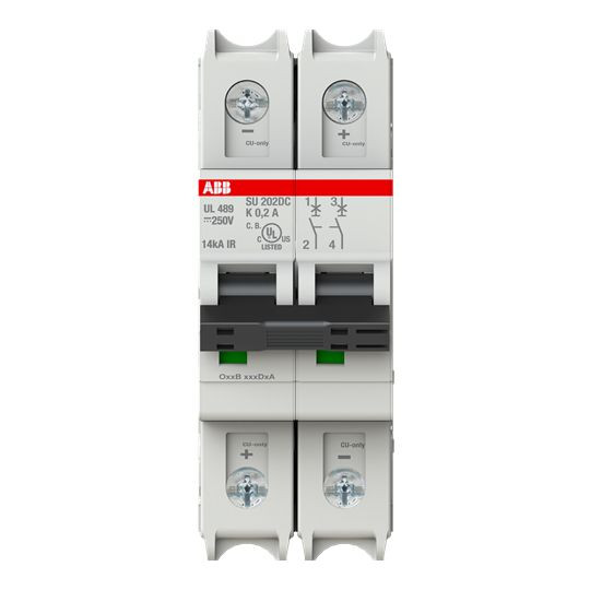 Die Sicherungsautomaten der Baureihe SU200DC schützen Kabel und Leitungen vor Überlast und Kurzschluss. Sie erfüllen die Bauvorschriften UL489 bzw. CSA 22.2 No. 5. Für bessere Sichtverhältnisse beim Verdrahten liegt die Anschlussöffnung für Leitungen oberhalb von der Anschlussöffnung für die Phasenschiene. Leiterquerschnitte bis zu 35 mm² können direkt am Gerät angeschlossen werden. Querschnitte bis 50 mm² können über die Anschlussklemme SZ-ESK BP, 2CDL201489R5001, separat über die dann notwendige PS...BP (UL 489) angeschlossen werden.