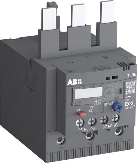 TF96 werden normalerweise an Schütze AF80 bis AF96 angebaut, mit Hilfe eines Einzelaufstellung-Sets können die Geräte aber auch separat auf DIN-Schiene montiert werden. Bei Überschreitung des an der Stromskala eingestellten Motorstromes lösen die Relais über Bimetall-Elemente aus und wechseln damit die Schaltstellung der beiden Hilfskontakte 1S/1Ö. Ein vorgeschaltetes Schütz wird dadurch abgeschaltet. Die Relais erlauben manuelles oder automatisches Rücksetzen, sie verfügen über Test- und Stopp-Funktion sowie eine ausgelöst-Anzeige. Die Stromskala der Geräte ist plombierbar. Zubehör wie Rückstell-Taster und Dahtrücksteller ergänzen das Sortiment.