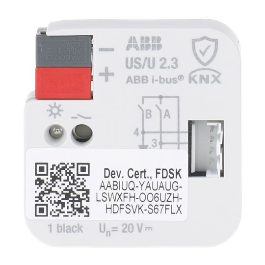 Das Universal Interface verfügt über 2 Kanäle, die als Ein- oder Ausgänge parametriert werden können, z.B. für den Anschluss von herkömmlichen Tastern, Hilfskontakten, LEDs und elektronischen Relais.