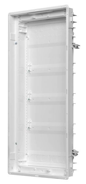 Mauerkasten HW,Ausschnittmaße BxHxT (mm) 310 x695 x88,TE je 18mm 48,Reihen 4,Mauerkasten,Schutzisoliert II,Schutzart: IP30,Für Geräte bis 63A,Einfachster Türanschlagwechsel ohne Demontage des Blendrahmens,Flacher Türverschluss mit Schnapptechnik,EinfachesAustauschen gegen ein Schloss,Geeignet für Einbaugeräte bis 70mm Tiefe,Farbton: RAL 9016 (verkehrsweiß),Gebaut nach DIN VDE 0603-1,DIN 43871,Mauerkasten:,MauerkastenAus Kunststoff,Befestigungshaken (HW),Nagellaschen (UP),Putzschutzplatte,Einbauset:,Traggerüst mit Gerätetragschiene,Geräteabdeckung,Blendrahmen mit Volltür und Putzausgleich,N/PE-Steckklemmen,N-FI-Erweiterungsklemme (in 2-,3- und 4-reihigen Verteiler),Stromkreisbeschriftungen und Blatt mit Piktogrammen,