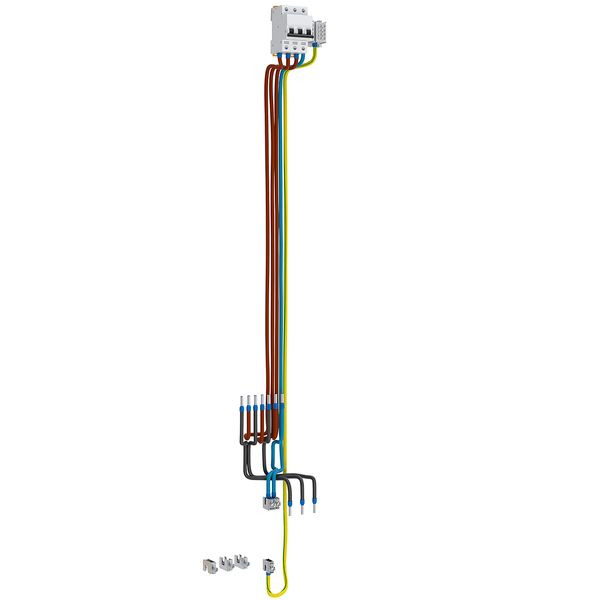 Nachrüstzählerverdahtung für unteren 3 Punkt Doppelstockzähler Reserveplätze bestehend aus: Verdrahtungssatz von SH-Schalter zum 3 Punktplatz und zum anlagenseitigen Anschlaussraum, Hauptschalter für den anlagenseitigen Anschlussraum, Sammelschienenklemmen für N und PE-Kontaktierung, N- und PE-Leitungen, Leitungsquerschnitt 16 mm²