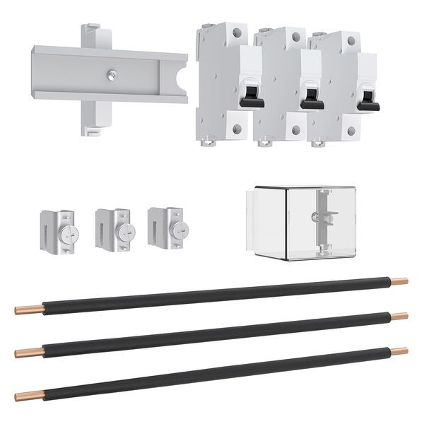 Bestückungspaket bestehend aus: 3x LS-Schalter 63 A Hutschienenmontage, inkl. Plombierhaube und Verdrahtungssatz 25 mm²