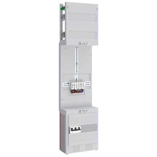 Zählerplatz bestehend aus: 1x 3-Punkt-Befestigung mit 25 mm², Selektiver Hauptleitungsschutzschalter E-Charakteristik 63 A/25 kA inkl. Zählersteckklemme 100 A und 5-poliger Hauptleitungsabzweigklemme, NAR mit Sammelschienensystem 5-polig, landesspezifische Ausführung für Luxemburg