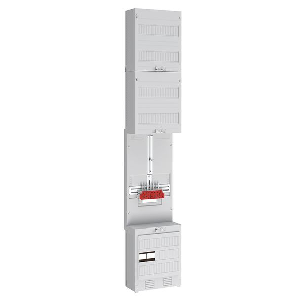 Zählerplatz bestehend aus: 1x 3-Punkt-Befestigung mit Verteilerplatz mit 35 mm², Zählersteckklemme 100 A und 5-poliger Hauptleitungsabzweigklemme, kein Zählerreserveplatz, NAR mit Sammelschienensystem 5-polig, landesspezifische Ausführung für Luxemburg