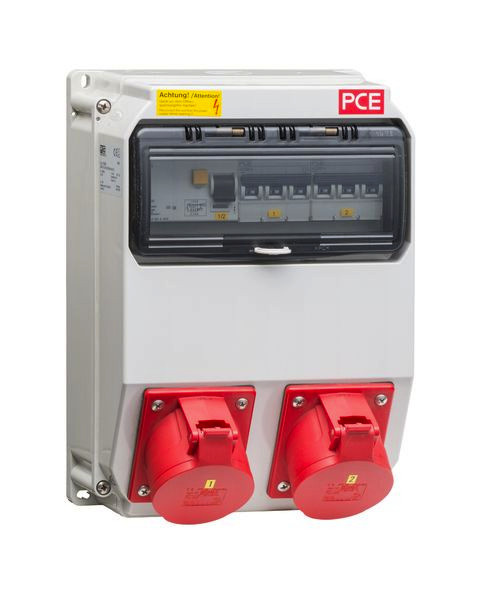 mit 1 CEE- Steckdose 16 A Steckdosenkombination bestehendAus: 1xCEE 32A 5-polig 400 V,1xCEE 16A 5-polig 400 V,mitAbsicherung 1xLS C32A 3polig,1xLS C16A 3-polig,1xFi-40/0,03A 4-polig