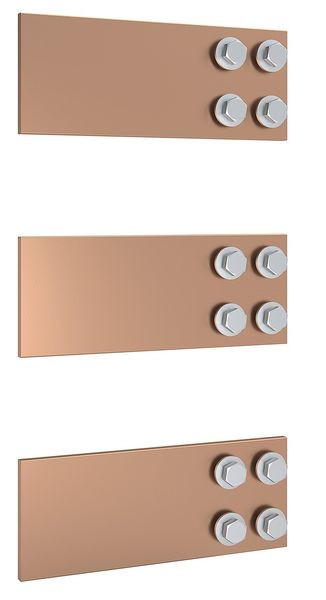 Sammelschiene CU: 100 x 10 mm für Wandlerlaschenbefestigung im Schrank Feldbreite 2, überstand beidseitig für Schrank-Schrank Verbindung, mit Befestigungsschrauben für Wandlerlaschen, 3er-Set