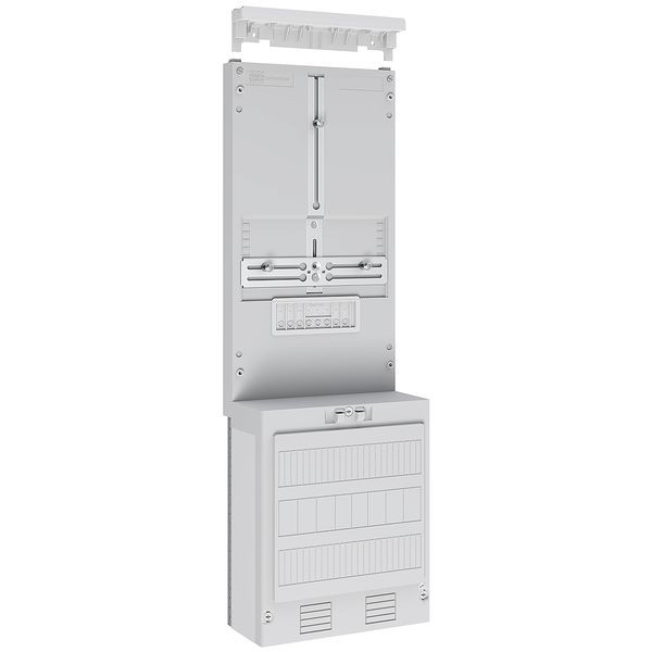 bestehendAus: Zählerplatz,H xB (mm): 450 x250: 3-Punkt mit Dichtmembrane,ohne Verdrahtung,Inkl,GehäusebefestigungssetAn der Zählertragplatte (Stirnteil),Vorbereitet für eine IP54-Klarsichtabdeckung,APZ-Raum,H xB (mm): 300 x250: Mit LexCom Home-Mediamontageplatte und Gerätetragschiene,ohne Gerätebestückung