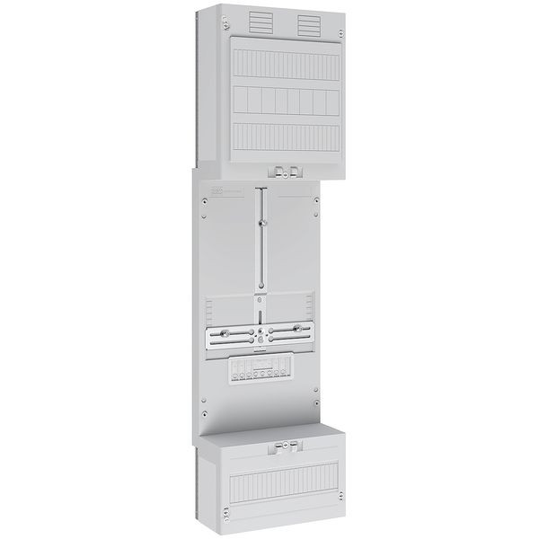 bestehendAus:APZ-Raum (oben),H xB (mm): 300 x250: Mit LexCom Home-Mediamontageplatte und Gerätetragschiene,ohne Gerätebestückung,Zähler-/Steuergeräteplatz,H xB (mm): 450 x250: 3-Punkt mit Dichtmembrane,ohne Verdrahtung,Vorbereitet für eine IP54-Klarsichtabdeckung,NetzseitigerAnschlussraum (NAR),H xB (mm): 150 x250: Mit perforierter 3-Punkt-Haube und Gerätetragschiene,ohne Gerätebestückung