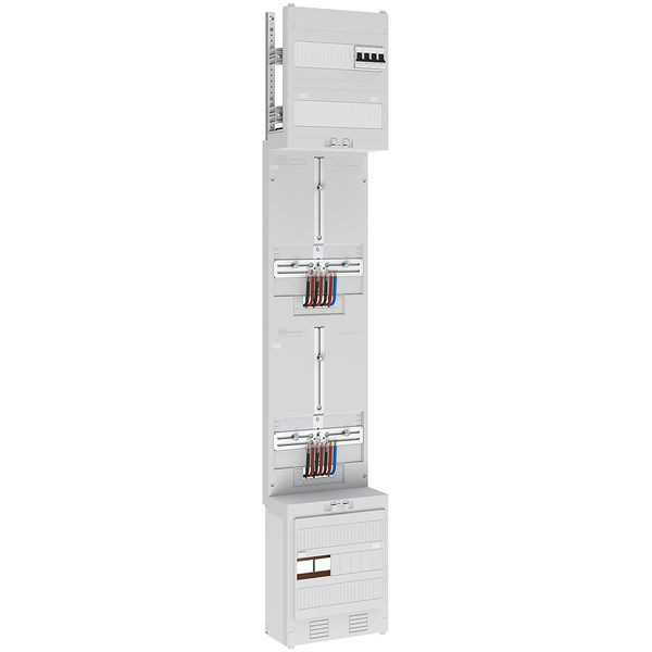 Zählerplatz bestehend aus: 2x 3-Punkt-Befestigung mit 5-poliger Hauptleitungsabzweigklemme, Sammelschienensystem 5-polig, 5x Anschlussklemmen 16 mm², kein Zählerreserveplatz, für Überschusseinspeisung