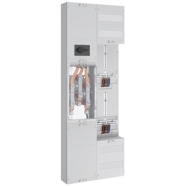 Zähler-Wandlerfeld 200A nach TAB Netze BW bestehendAus: 1xAnschluss für Verteilerfeld mit NAR 5-polig,1xWandlermodul 450mm mit Wandlerlaschen BauformA mit 30 x5mm,1xAAR Lasttrennschalter 3-polig 250A und Klemme für N und PE,1xAAR 300mm 24 TE,1x3-Punkt Zählerplatz 375mm,1xFRE-Platz 375mm 3-Punkt,1xWandlerzusatzraum 300mm 24 TE bestückt mit Spannungspfadsicherungen und Wandler-Trennklemmen