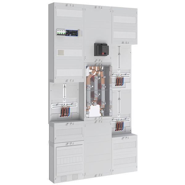 Zähler-Wandlerfeld 200A mit Netz- undAnlagen-Schutz nach TAB Netze BW bestehendAus: 1xAnschluss für Verteilerfeld mit NAR 5-polig,1xWandlermodul 450mm mit Wandlerlaschen BauformA mit 30 x5mm,1xAAR Motorbetriebener Lasttrennschalter NSx4-polig 250A für NA-SchutzAnwendung und PE Klemme,1xAAR 300mm 24 TE,1x3-Punkt Zählerplatz 375mm,1xFRE-Platz 375mm 3-Punkt,1xWandlerzusatzraum 300mm 24 TE bestückt mit Spannungspfadsicherungen und Wandler-Trennklemmen,1xVerteilerfeld 2-reihig 48 TE mit NA-Schutzsteuerung,1xFRE-Platz 300mm 3-Punkt mit 12 TEAnschlussraum 150mm,1xAPZ-Raum 300mm mit RJ45 Schnittstelle