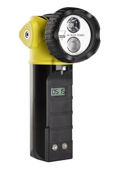 AccuLux HL 30 EX POWER Leuchte (Art.Nr. 459781, gelb/schwarz) Aufladbare Knickkopf-Leuchte mit 2 Power LEDs und sehr hoher Leuchtkraft; 3-stufig schaltbar: für den Fernbereich (420 Lumen) und 2 Schaltstufen für den Nahbereich; Notlichtfunktion zuschaltbar, austauschbarer Lithium-Ionen-Akku mit digitaler Restkapazitätsanzeige in Stunden und Minuten, beidseitig (180°!) verstellbarer Leuchtenkopf; EX-Zonen: 1, 2, und 21, 22; Schutzart: IP 67 (Leuchte): tauchfähig bis 1 m Tiefe (zeitweise); Gewicht: ca. 600 g