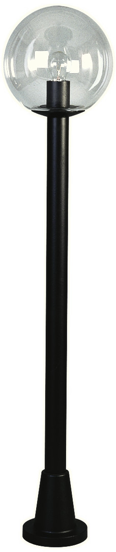 aus korrosionsbeständigem Aluminiumguß mit klarer Kristall-glaskugel d 250 für je 1 Glühlampe A 60 75W, Fassung E 27.Mit Mast, anschlussfertig zum Aufschrauben auf ein Fundament oder auf den Erdeingrabsockel Typ Nr. 690010.Farbe: schwarz Schutzart IP 44 - Schutzklasse : d 150 x 1250 mm