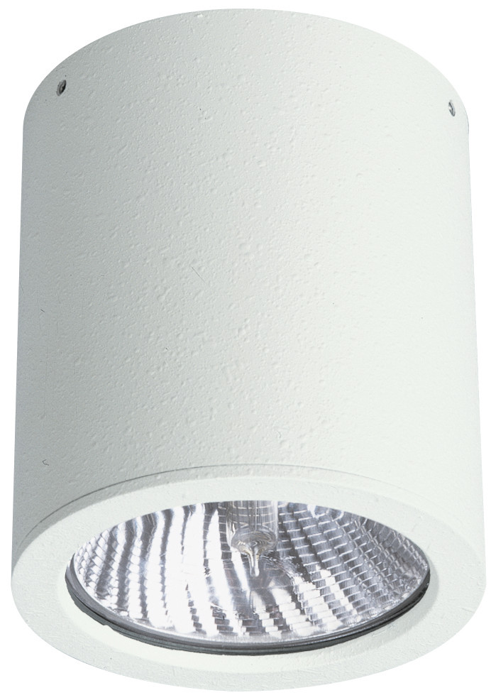 Deckenaufbaustrahler, HV-Halogenlampe, Fassung E27, 1x100 W, Gehäuse Aluminium weiß, Höhe/Tiefe 120 mm, Außendurchmesser 110 mm, Schutzklasse I, Schutzart (IP) IP23