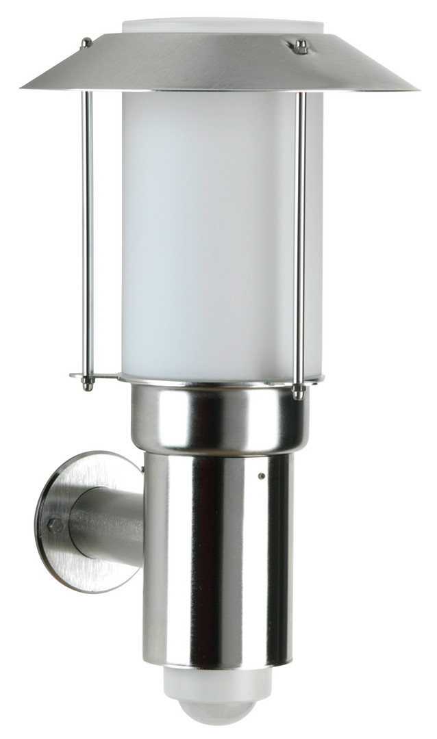 Albert-Wandleuchte 690238 - mit integriertem Bewegungsmelder - aus Edelstahl mit opalem Glas. Eingerichtet für 1 x Glühlampe A60 75W, Fassung E27.Schutzart IP 44 - Schutzklasse : d 210 x 365 x 230 mm