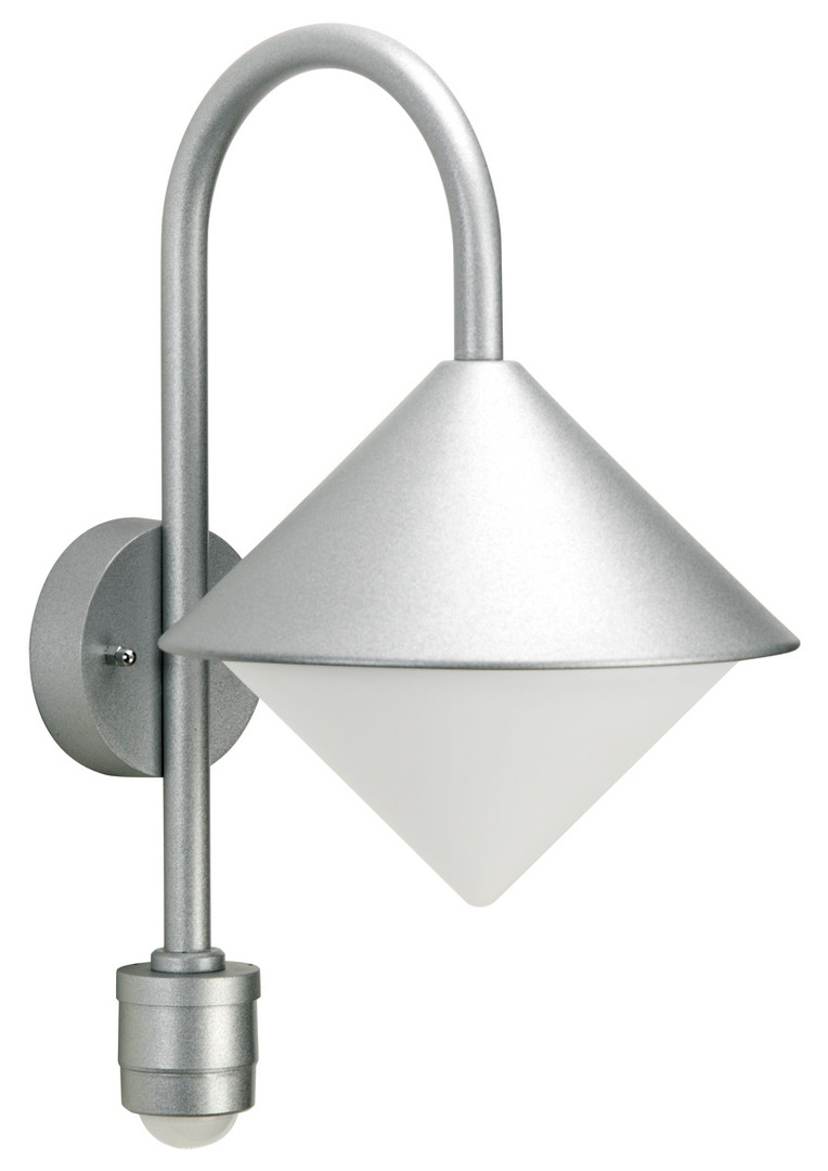 Albert-Wandleuchte 690646 - mit integriertem Bewegungsmelder -aus korrosionsbeständigem Aluminiumguß mit opalem Glas matt. Eingerichtet für 1 x A60 75W, Fassung E 27.