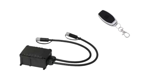 90724303 Smart Steuerung „Plug & Play“, IP67 Steuerung steuerbar über Tuya SmartApp oder mit der beiligenden Fernbedienung (Remote Control), kompatibel mit Amazon Echo, Google Home, Apple Home Kit, Schaltleistung 10 Ampere = max. 2000W, mit Stecker und Kupplung, Länge Zuleitung 500mm