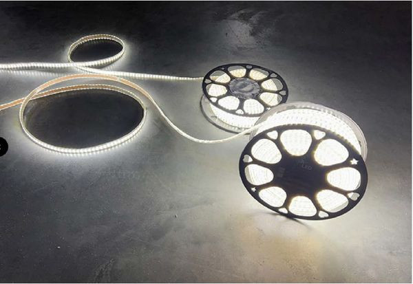230V LED-Band, perfekt als Arbeitsbeleuchtung oder Baustellen-Wegebeleuchtung. LED-Streifen eignen sich besonders als Arbeitsbeleuchtung für Baustellen usw., wo eine schnelle und einfache Beleuchtung erforderlich ist. Das LED-Band ist einfach zu handhaben, da es auf einer Rolle mit 15 Metern und mit einem 1,5 Meter langen, starken Gummikabel mit zugelassenem EU-Stecker geliefert wird. LED Band Eco Rolle 15 Meter 12W/Meter 1500lm/Meter 180LEDs/Meter 4000K IP67