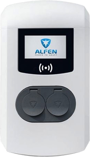 Eve Double Pro-line 44kW Wallbox mit zwei Ladedosen.