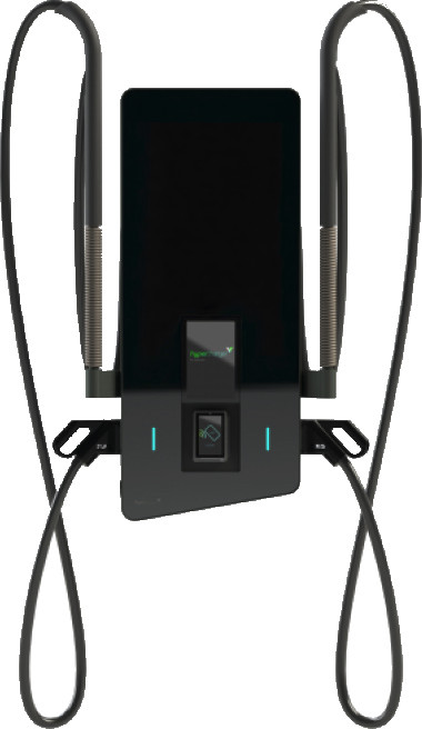 50kW DC Wallbox mit 2x CCS2 Combo (150A) ungekühlt, 4,5m Kabel, max. Ladeleistung (kW): 50 (2x 25) , max. Ausgangsspannung (V): 150 - 1000, RFID, OCPP 1.6, 4G/LTE/GSM Modul, Kabelmanagement,