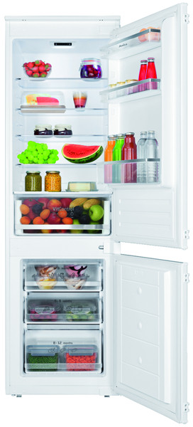 Kühlteil: LED-Beleuchtung oben, 4 Glasablagen, 1 Gemüseschublade mit Glasabdeckung, 1 VitControl Schublade,
