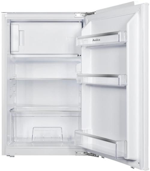 Dieser kompakte Einbaukühlschrank mit Festtür-Technik bietet einen Gesamtnutzinhalt von 116 l, aufgeteilt in 100 l Kühlteil und 16 l Gefrierfach. Er verfügt über elektronische Steuerung, Tür-Offen-Alarm und einen energieeffizienten Inverter-Kompressor. Im Kühlteil finden sich 2 Glasablagen, 1 Gemüseschublade, 3 Türablagen und seitliche LED-Beleuchtung. Das Gefrierfach wird manuell abgetaut. Mit der Energieeffizienzklasse D verbraucht er 117,2 kWh/Jahr. Bei einer Geräuschemission von 35 dB(A) ist er sehr leise (Klasse B). Die Einbaunische sollte 881-884 x 562 x 550 mm (HxBxT) messen. Der Kühlschrank ist für Umgebungstemperaturen von 10-38°C geeignet und wiegt 31 kg netto.