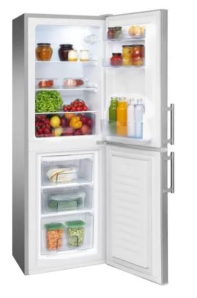 Kühl-/Gefrierkombination, Edelstahloptik-Kühlen: 93 l, Gefrieren: 45 l Kühlen, Abtauung: automatisch, 2 Glasablagen, silberne Applikationen, 1 Gemüseschublade, 3 Türablagen, LED-Beleuchtung, side-Zubehör: Eiertablett, Gefrieren: Abtauung manuell, 3 Gefrierschubladen