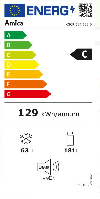 | Durchschnittlicher Energieverbrauch in kWh/Jahr | 129 kWh |