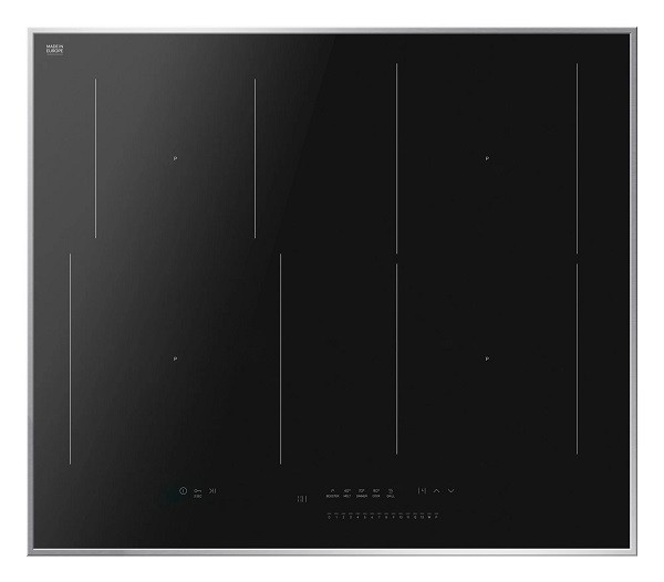4 Induktions-Kochzonen mit Topferkennung, 1 Bridge-Zone, automatische Zonenaktivierung Hob'n Go, Booster für alle Kochzonen, Restwärmeanzeige, Bedienung über Slider Sensorsteuerung DirectTouch, 14 Leistungsstufen, 4 Gar-Temperaturstufen, Pausenfunktion Stop'n'Go, Timer, Kurzzeitwecker, Kindersicherung, Edelstahlrahmen