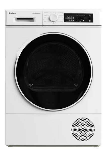 Wärmepumpentrockner 8,0 kg Fassungsvermögen, Drehwähler für Programme, 15 Programme, Trommelreversierfunktion, Startzeitvorwahl,, h, Knitterschutzphase nach Programmende, Kindersicherung, LED Display, weiß, Restzeitanzeige, Filtersättigungsanzeige, Anzeige: Kondenswasser voll, Innenbeleuchtung LED, Trommel verzinkt