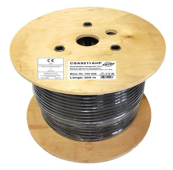 Koaxialkabel, 3-fach geschirmt, Class A, halogenfreies Kabel mit geschäumten Dielektrikum, HDTV geeignet, passend für ASTRO-Stecker FDS 07 (F-Drehstecker), FCS 07 (F-Crimpstecker), FKS 06 (F-Kompressionsstecker) und IKB 06/IKS 06 (IEC, mit Metermarkierung, 500 m Trommel