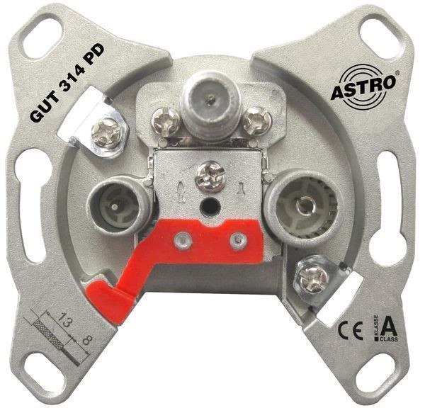 Programmierbare BK-SAT-Durchgangsdose, 5 - 2150 MHz, SAT- & TV- Anschlussdämpfung ca. 14 dB, DC-Durchgang 500 mA, programmierbare Userband-ID für Unicable-Multischalteranlagen, Programmierung mittels GUT Programmer