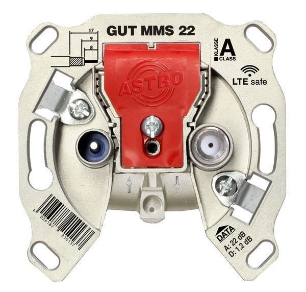 | Kurzbeschreibung | 2-Loch BK-Modem-Durchgangsdose, Anschlussdämpfung 22 dB |