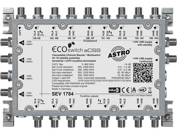 | Kurzbeschreibung | Einkabelumsetzer für 4 (8) SAT, 17 x F in, 4 x F out (8 UB |