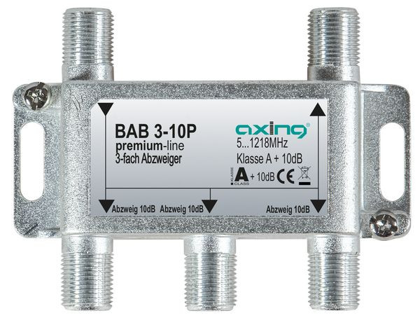| Kurzbeschreibung | Abzweiger, 3-fach, 10 dB, 5 - 1218 MHz, F-Buchse, premium-line |
