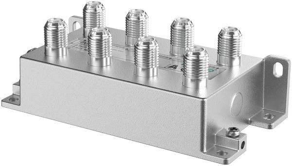 8-fach Verteiler, 11 dB, 5 - 1800 MHz, Bauform 02 Geeignet für DOCSIS 3.1 und 4.0 Klasse A (+10 dB) gemäß EN 50083-2 Ein- und Ausgänge brummentstört Hohe Intermodulationsfestigkeit Hohe Rückflussdämpfung und Entkopplung Vodafone gelistet