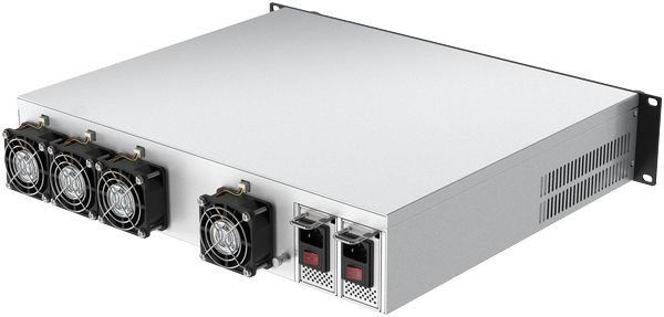 Optischer Faser-Verstärker mit Wavelength-Division Multiplexing (WDM), Zur Verteilung von CATV und GPON in FTTx-RF-Overlay Netzwerken, 17 dBm Ausgangsleistung, Ein Eingang für RF-Overlay (SC/APC), 32 GPON-Eingänge (LC/UPC), 32 GPON + RFoG Ausgänge (LC/APC), WDM 1310 nm , 1490 nm , 1550 nm, 19" Gehäuse, 2 HE, Redundante Netzteile (100-240 VAC)