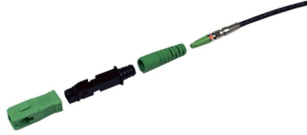 Vorkonfektioniertes optisches Kabel, 10 m, SC/APC-Stecker am einen Ende, APC-Ferrule am anderen Ende, SC-Stecker zum werkzeugfreien Aufstecken auf Ferrule liegt bei ? dadurch kein Spleißen im Feld, Einschieben, Einziehen oder Einblasen in Ducts mit einem Innendurchmesser 5,5 mm möglich, Entspricht IEC 60794-1-2, Single-Mode, ITU-T: G657A1, Brandklasse Dca-s3,d0,a3 nach EN 50575:2014 + A1:2016, Lieferung im Polybeutel