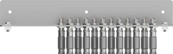 Erdungswinkel, 12-fach, Erdung und Potentialausgleich gemäß EN 60728-11, Bestückt mit premium-line F-Doppelbuchsen CFA 26-02 und Quickfix-Adaptern CFA 4-01N, Für AXING Multischalter SPU 924-09S an den Teilnehmerausgängen